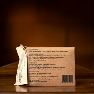 Soap Berries, Shikakai, Citrus, Tamarind, Bitter Albizia, and Wood Ash.