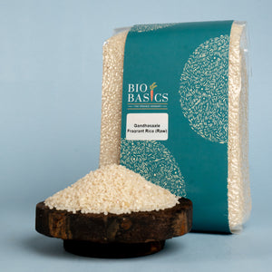 Bio Basics sources it from a PGS-certified farmers' group in Wyannad. As with all varieties of raw rice, Gandhasaale Rice is aged for 4-5 months after harvesting. The rice is then milled at regular intervals and supplied to us. This process ensures optimum cooking quality of the rice.