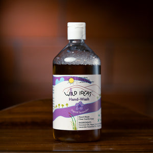 The Wild Ideas hand wash is made from liquid vegetable castile soap which is a super effective cleanser with added Vitamin E and Lavender. It is gentle on your hands.