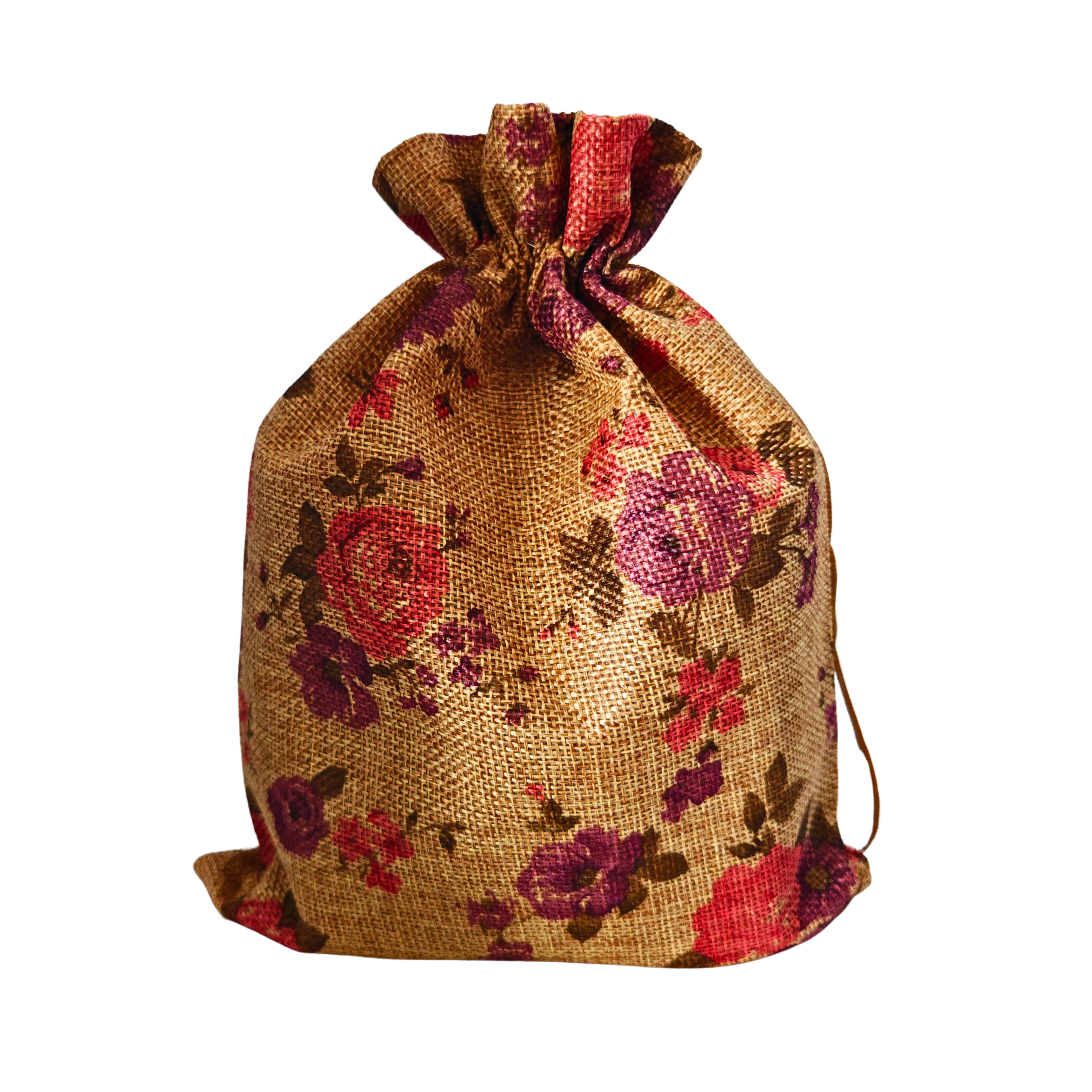 This delicious saffron comes in a tiny floral jute bag and a keepsake bookmark card about saffron and a cute Seasons greetings card .