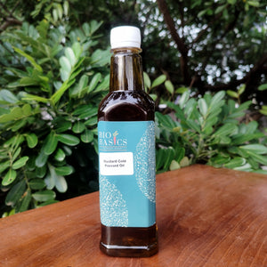 Cold-pressed Mustard oil made with sun-dried, organically grown Mustard seeds. Unrefined, extracted using cold-pressed chekku/ghanis and without no chemicals intervention. With their nutrients and its flavour fully retained, cold-pressed oils only require half of what you would usually use... Deep, rich in flavour, traditionally mustard oil is in bengali curries & subzis. We love it as a salad dressing too!