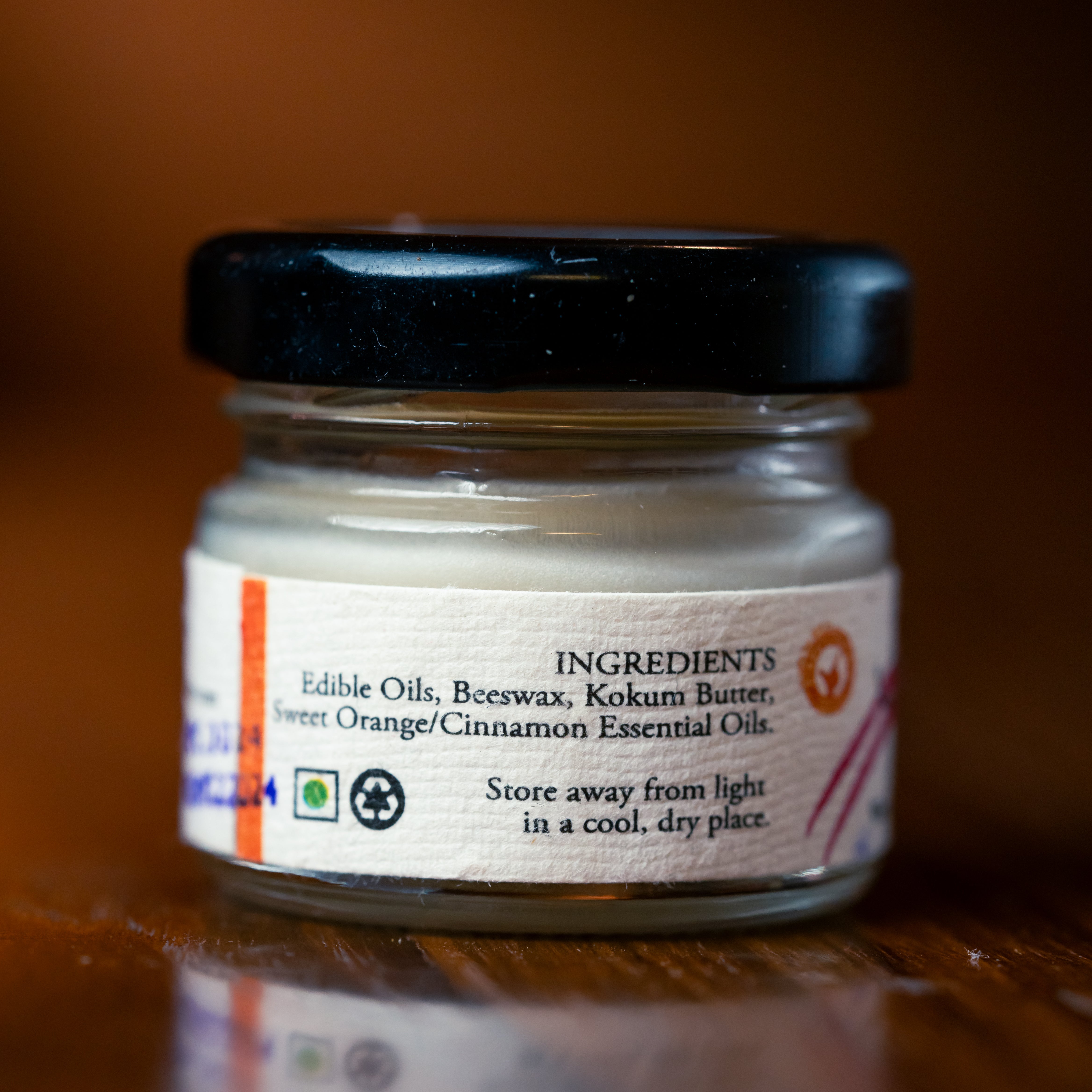 Refresh and uplift your lips with this zingy orange-flavored lip balm. Made by blending orange essential oil with beeswax and olive oil, this balm gives a delightful citrus scent and a hint of orange flavor.