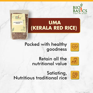 Uma Parboiled Rice is a very popular variety of red rice that comes from a 30-acre, PGS-certified farm in Palakkad, Kerala. The rice is semi-polished, roundish and medium-sized. The red stripes on the rice show that half of the bran is removed during milling. Uma Parboiled Rice can be used for daily consumption along with South Indian curries. It is tasty, easy to cook and meets your daily fibre requirement. It is ideal for people who want to start their red rice journey. It is also popularly used in Kerala for making dosa batter.