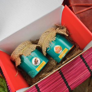 This kaali peeli combo comes in a vibrant red box and a cute Seasons greetings card. Gift your loved ones a wholesome gift to remember you by