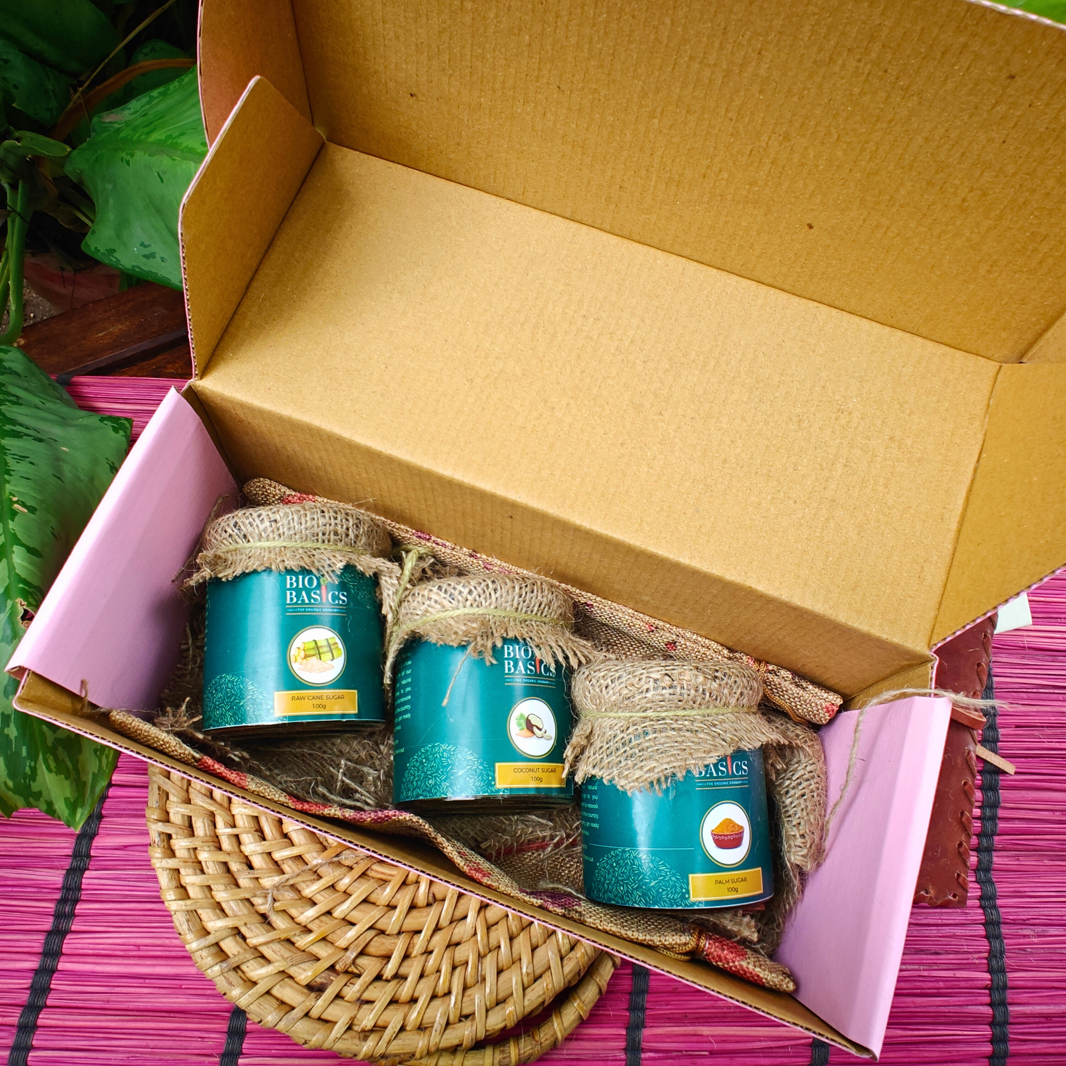 Sweet Combo (Each 100g): Coconut Sugar, Palm Sugar, Rawcane Sugar (Organically Grown)