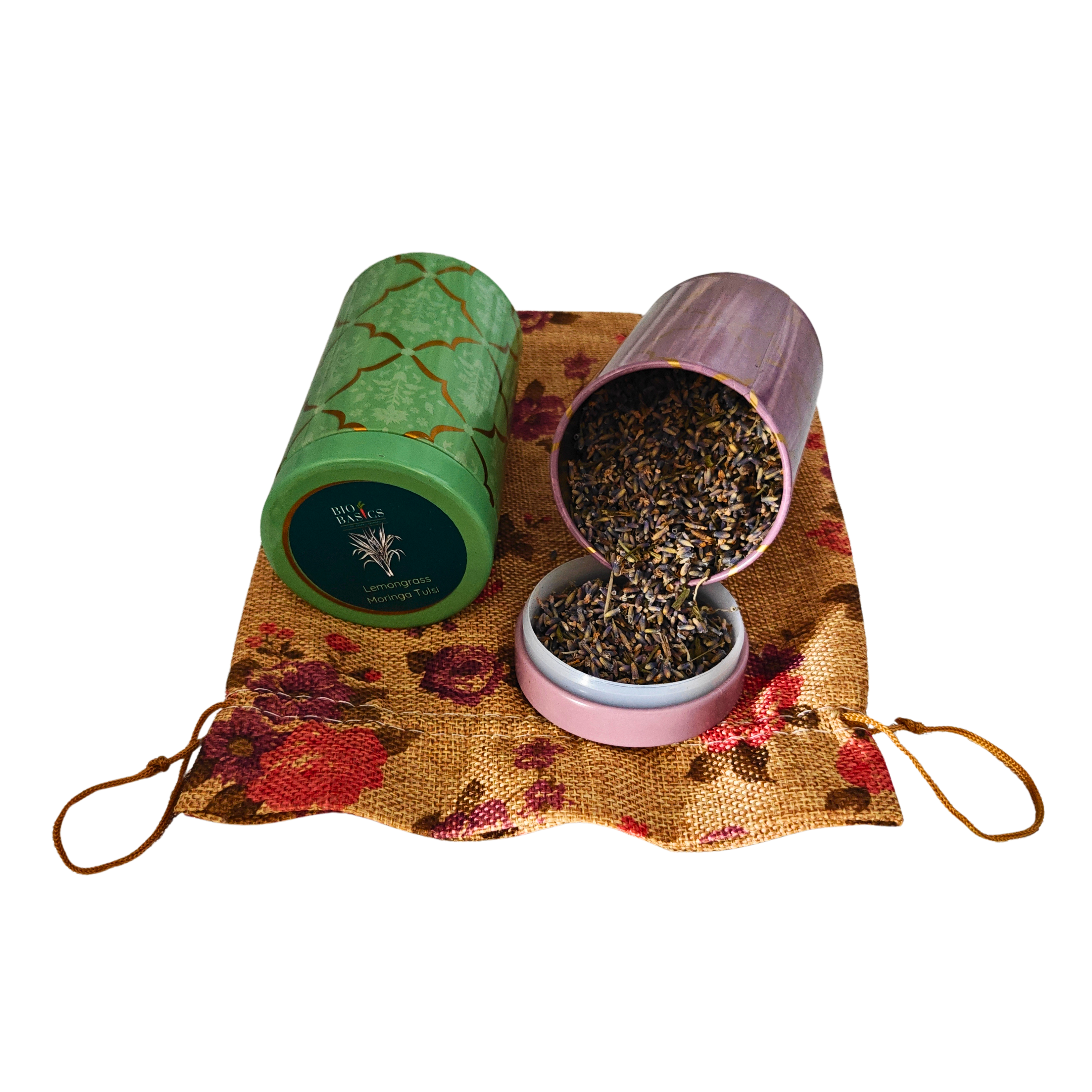 In this combo pack: Dried Lavender Flowers - 30gm & Organic Moringa Tulsi Tea - 60gm