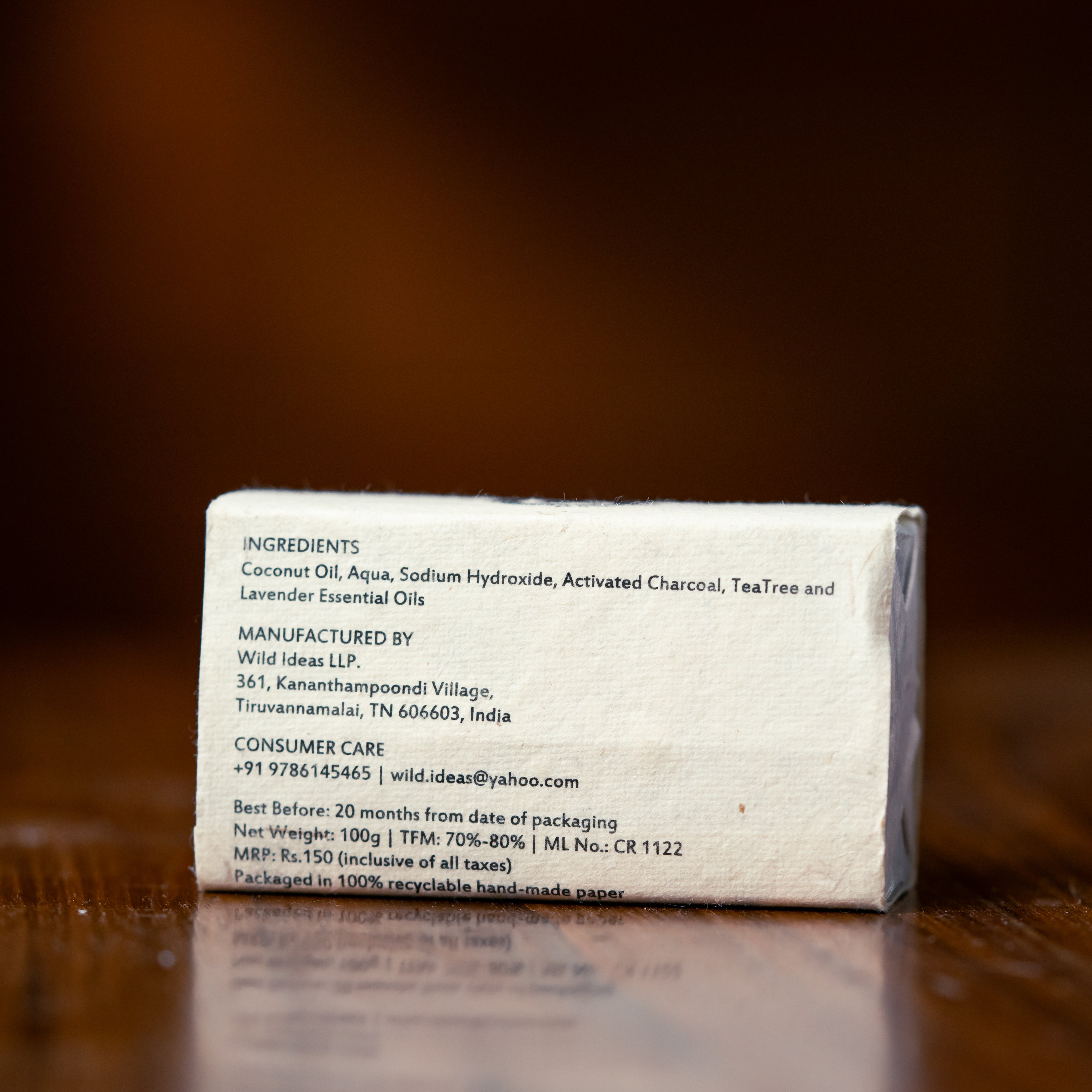 Wild Ideas Activated Charcoal Soap – Tea Tree & Lavender (100g) is a natural, Hand-Made soap that gives you a deep clean. The magic of its ingredients removes dirt & toxins. leaves skin smooth & supple.