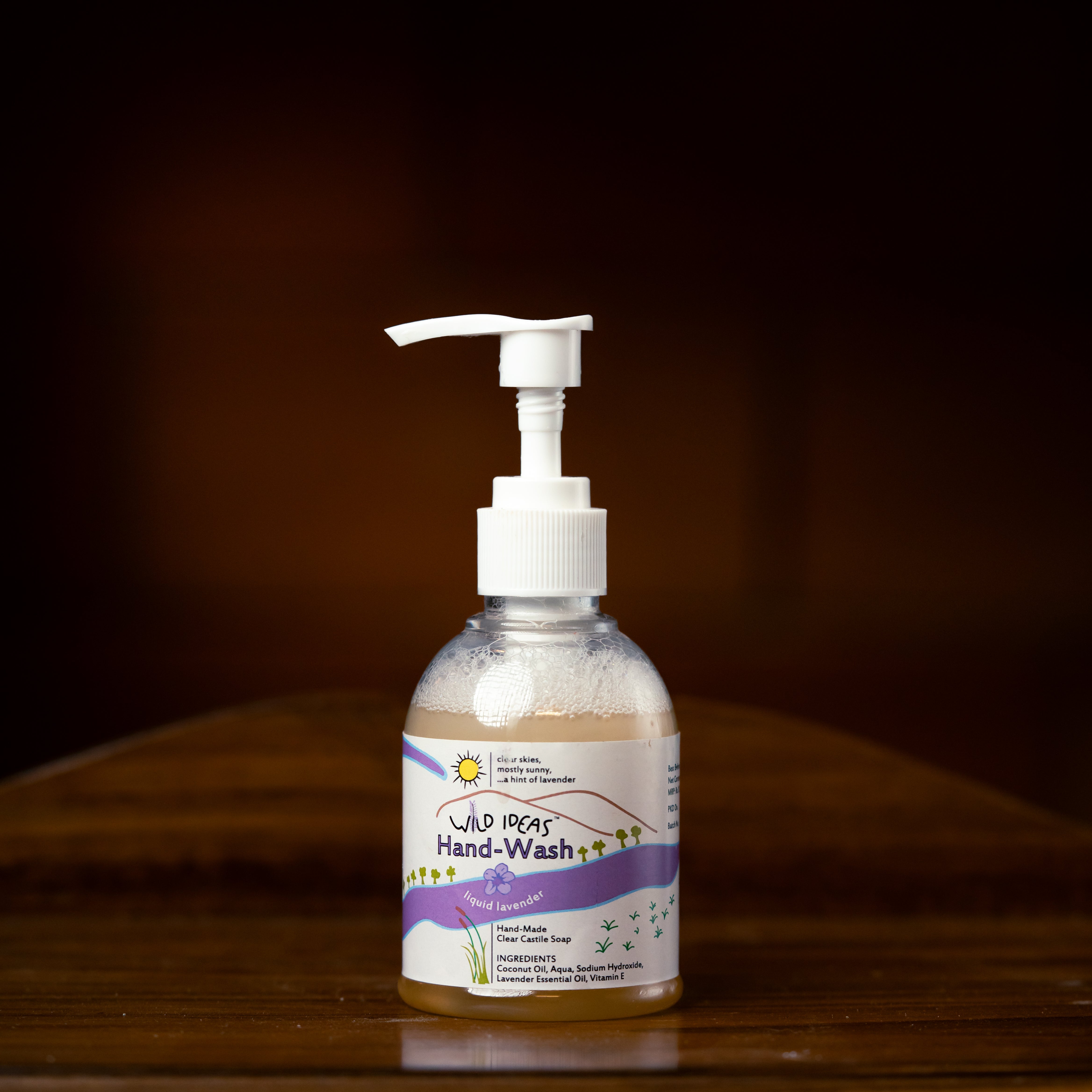 The Wild Ideas hand wash is made from liquid vegetable castile soap which is a super effective cleanser with added Vitamin E and Lavender. It is gentle on your hands.