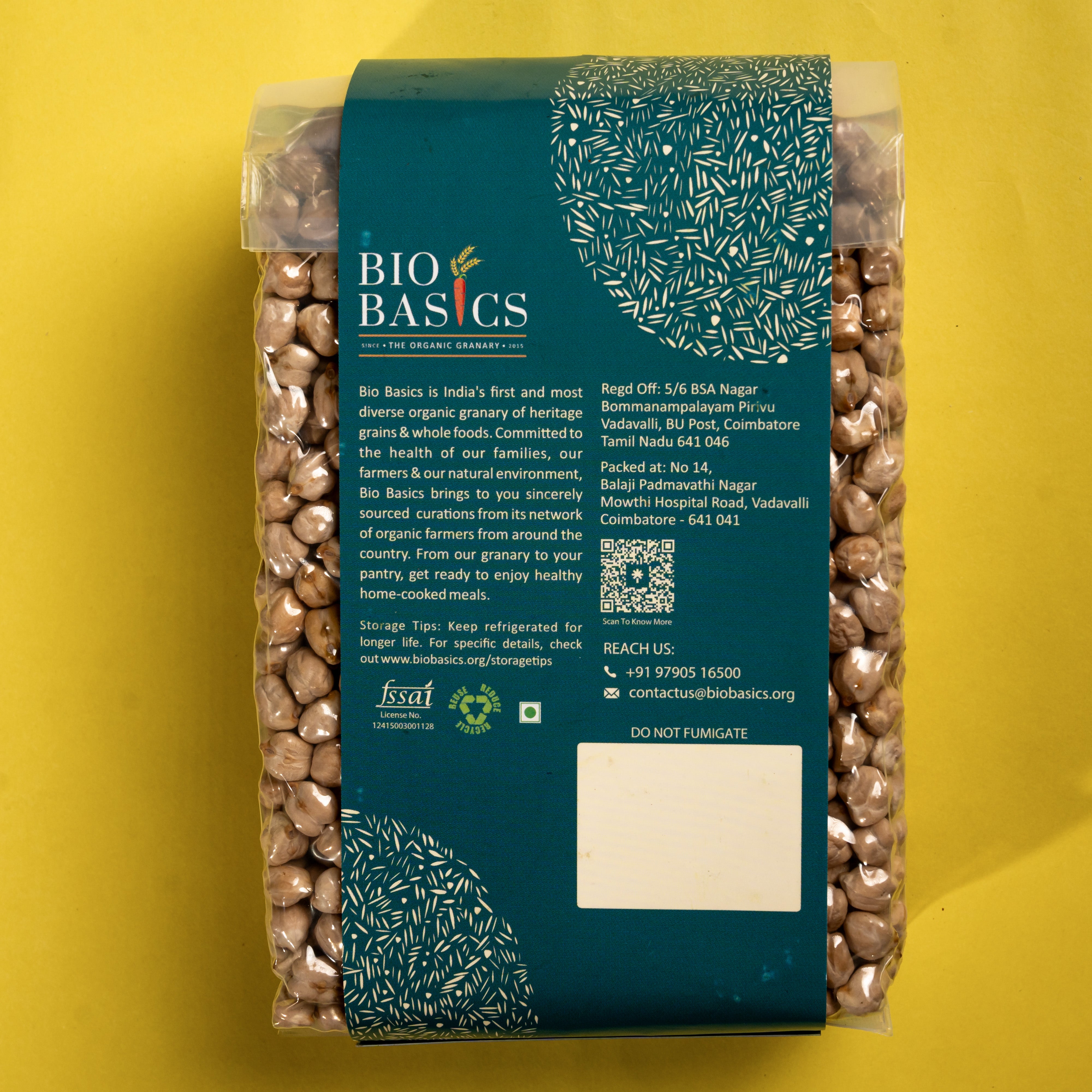 Certified Organic. Bio Basics' Kabuli Chana/Konda Kadalai/Chickpeas comes form a farmer group in Karnataka. And is grown, processed and stored without any chemical intervention. Unpolished chickpeas. Great source of plant protein. Roast them for a quick healthy snack, make choles, sundals, hummus, patties.